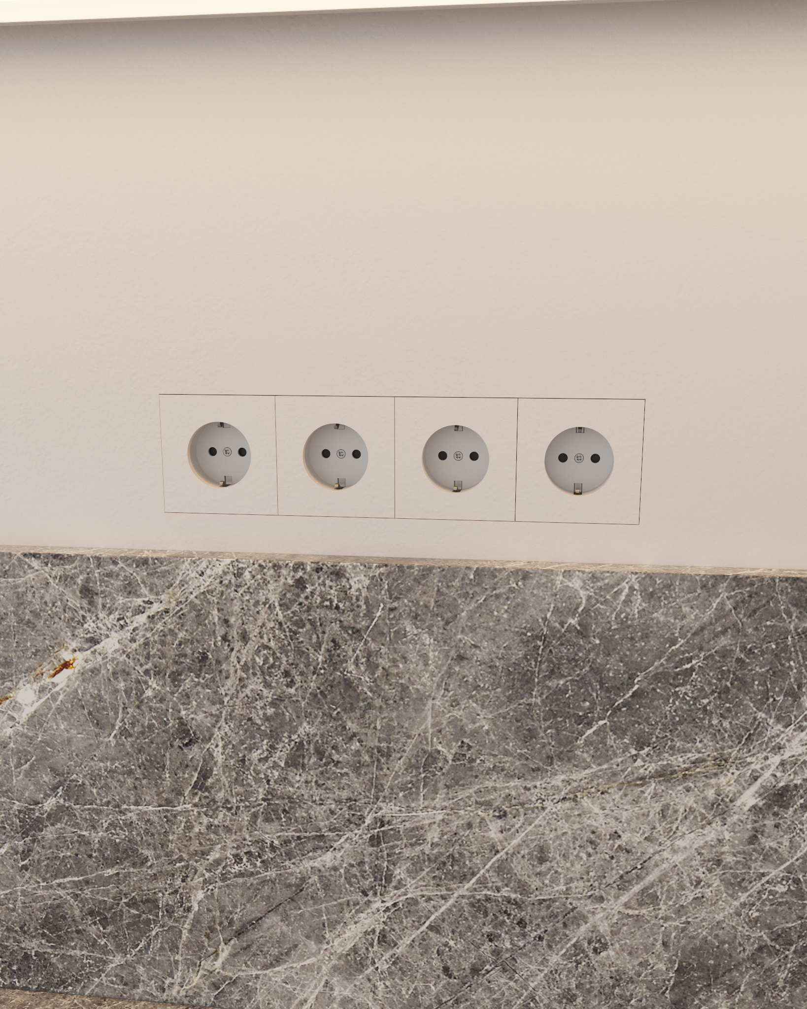 Soluție modernă și elegantă pentru interioare rafinate. Prizele încastrate complet se aliniază perfect cu suprafața peretelui, oferind un aspect uniform, minimalist și curat. Ideal pentru spații unde estetica și funcționalitatea se îmbină armonios.